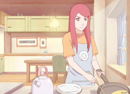 Kushina’s husband may cook on the battlefield but in the kitchen Minato knows when he’s beat. He enjoys Kushina’s cooking proving that apparently she is quite a great cook. I guess she has more than one use for that frying pan.